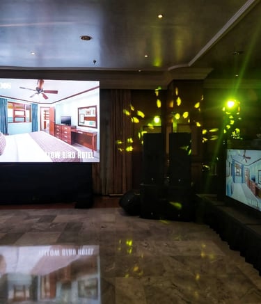Transformamos espacios con diseños de iluminación impactantes que realzan la atmósfera de tu evento.